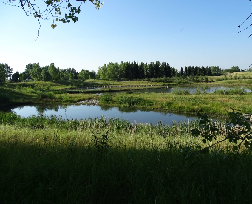 This wetland, pond and stream landscape was constructed as part of the Lakeview Storm system upgrade project. The design has been optimized for the removal of the medium to fine silt particles that predominate in Calgary stormwater. The design features, which include an efficient forebay, biofilter zones, and constructed wetland, form an integrated treatment train, optimized for fine silt removal and also providing enhanced removal of other pollutants that are not currently regulated for urban stormwater in Calgary (e.g. nutrient, hydrocarbons and BOD).