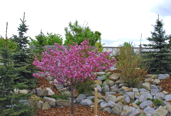This project is an example of the incorporation of Low Impact Development (LID) techniques within a densely developed urban site. All of the landscape areas are designed as absorbent landscapes, with 500 to 750 mm of topsoil and close attention to the creation of long low-gradient flow paths from roof downspouts to stormwater catchbasins. The result is a vigourous landscape that is sustained with minimal potable water irrigation. Also, during the majority of rainstorms, very little water reaches the catchbasins. Some areas of the site are “green roof” landscapes, built over the parkade structure. A lightweight amended soil was used in these areas, combined with insulation to mitigate the effects of Calgary’s difficult winter conditions on plant survival. By integration with the structural design, local areas of deepened soil were accommodated, allowing tree and shrub plantings.